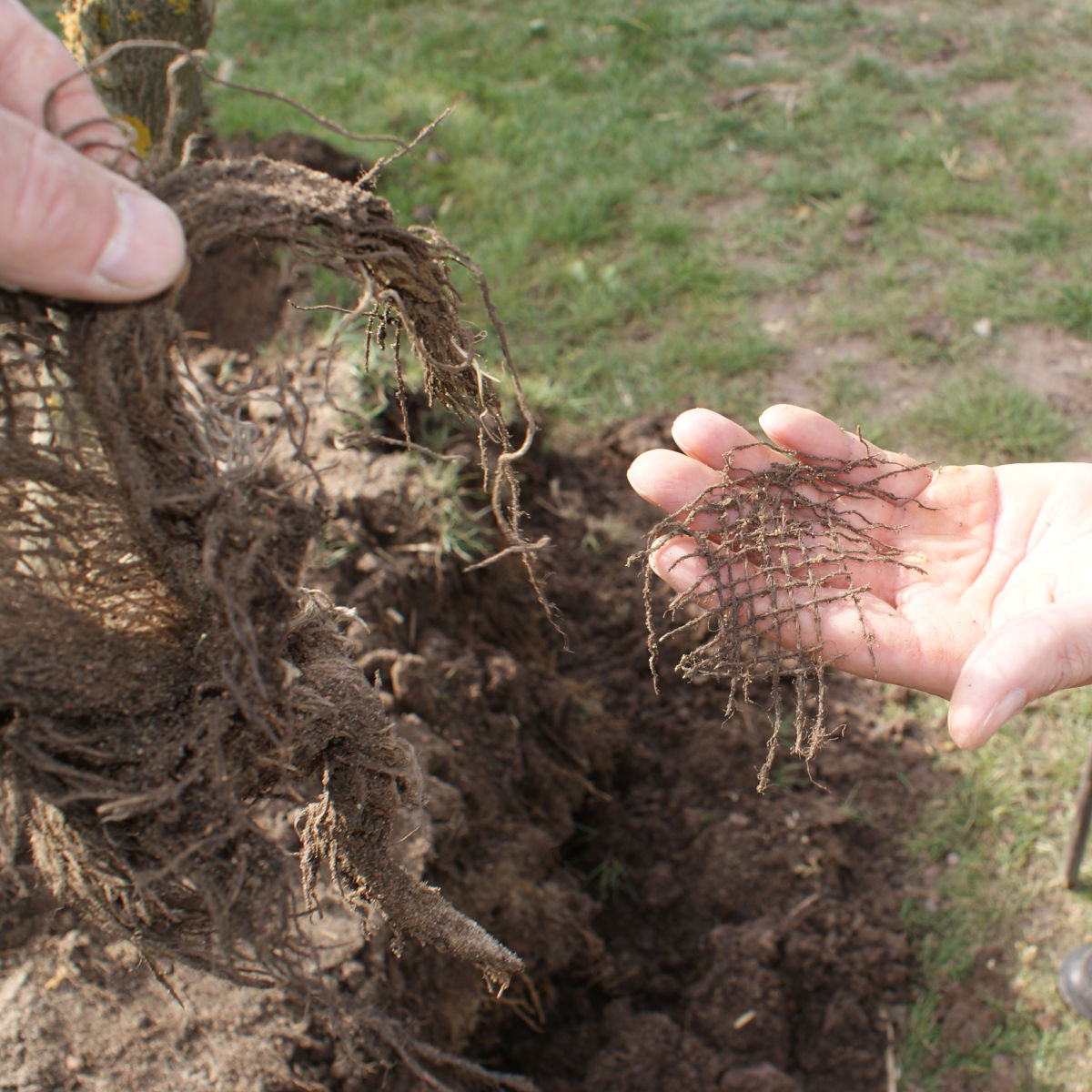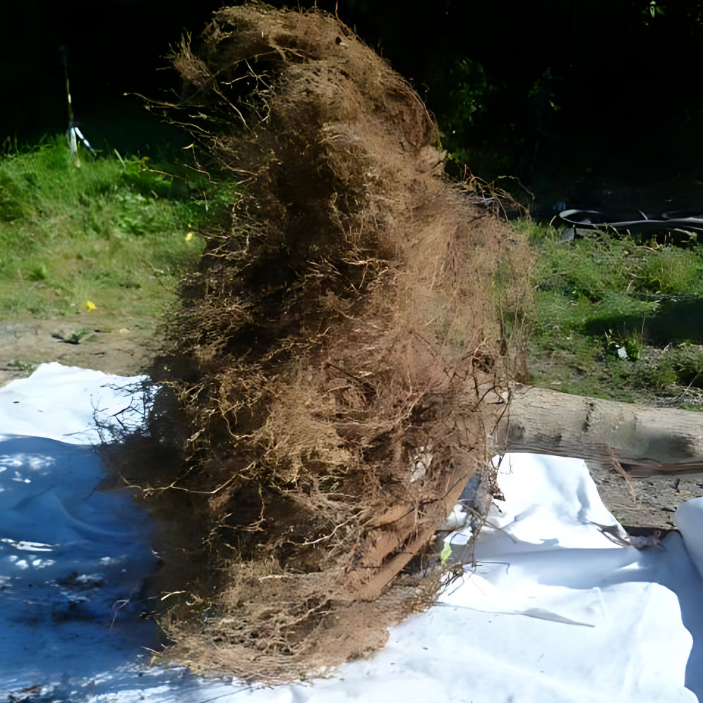 Im untersuchten Fall zeigte sich, dass die Verwendung von Drahtkorb und Ballentuch das Wurzelwachstum offenbar nicht behindert hat – eine Beobachtung, die für vergleichbare Pflanzsituationen von Interesse sein könnte. In diesem Fall führte die Kombination aus geschlossenem Ballen und gezielter Sicherung zu einem gesunden, kräftigen Wurzelbild.